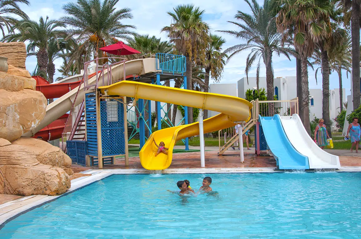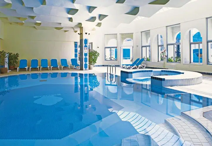 酒店设有4个淡水游泳池,2个成人游泳池,一个儿童游泳池和一个带按摩浴缸和桑拿浴室和健身按摩中心的室内游泳池,游泳池和海滩的免费日光浴床和遮阳伞,床垫。